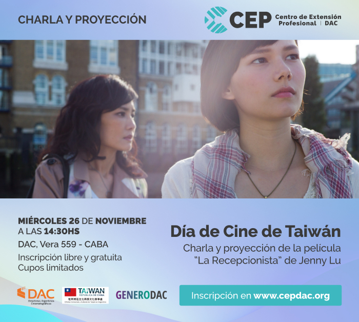 Día de Cine de Taiwán Charla y proyección de la película “La Recepcionista” de Jenny LuParticipan: Florencia Miao-hung Hsie (Directora General de la Oficina Comercial y Cultural de Taipéi en …